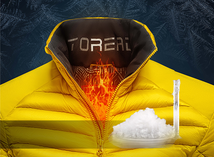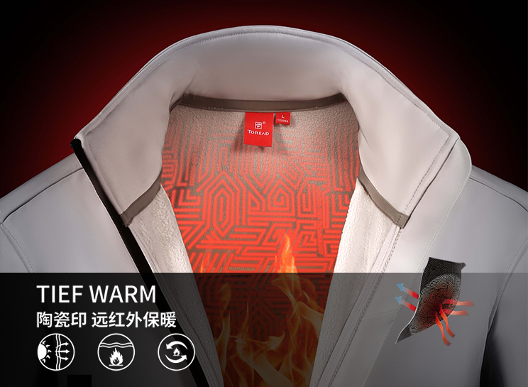 • TiEF WARM-X3科技模仿火山岩矿物锁温特性,在材料内层植入TiEF仿生矿物热感科技印花。印花可释放远红外线,增强材料的蓄热与辐射热功能,有效反射人体热能,防止热量流失,在服装与皮肤之间构建起热能循环小气候,更加保暖的同时激发运动元气!